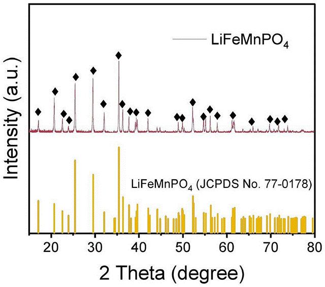 [0022]图1是实施例2得到的磷酸锰铁锂材料XRD图;
